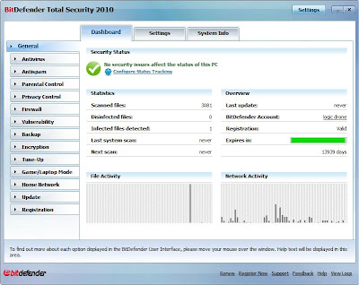 Perusahaan software antivirus BitDefender kembali merilis beberapa produk antivirus andalannya, salah satunya adalah BitDefender Total Security 2010. 2009 aja belum abis, udah ada 2010 nya.BDTS 2010 merupakan antivirus terlengkap, dimana didalamnya sudah terdapat fitur yang ada pada Bitdefender Antivirus dan BitDefender Internet Security, serta berbagai tambahan fitur canggih lainnya.